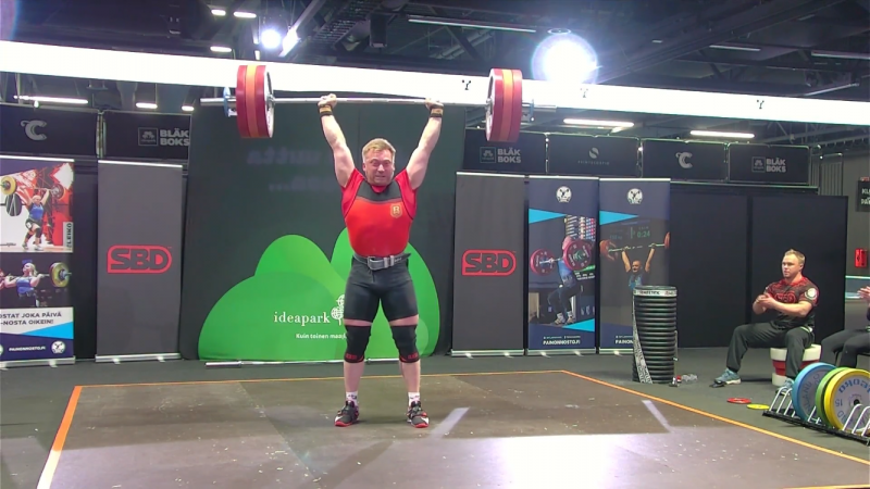 Työnnössä nähtiin jälkeen kevyt avaus 168 kiloa, jonka jälkeen oli aika tarttua ennätyspainoihin. Toisella kierroksella ylöstyöntö jäi hilkkua vaille, mutta kolmannella tanko sitten kohosi vakuuttavasti yläilmoihin.